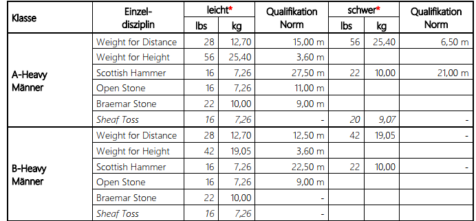 - In den A- und B-Heavy-Listen werden alle Wettkämpfe aus dem aktuellen und dem vorhergehenden Jahr ausgewertet.